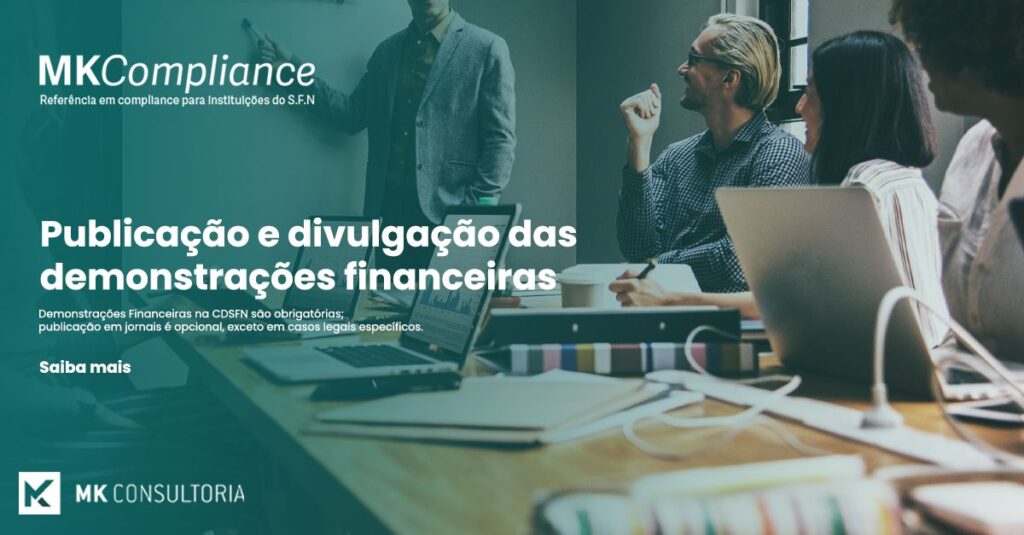 De acordo com a regulamentação vigente do Banco Central do Brasil (BCB), divulgar as demonstrações financeiras na Central de Demonstrações Financeiras do Sistema Financeiro Nacional (CDFSFN) é necessário, enquanto a publicação dessas demonstrações em jornais ou no Diário Oficial é facultativa. Existem, porém, outras disposições legais que requerem a publicação das demonstrações.