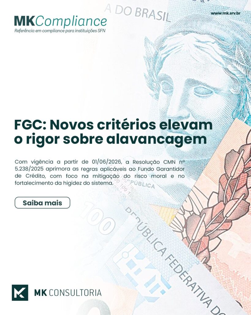 Com vigência a partir de 01/06/2026, a Resolução CMN 5.238/2025 aprimora as regras aplicáveis ao Fundo Garantidor de Crédito, com foco na mitigação do risco moral e no fortalecimento da rigidez do sistema.